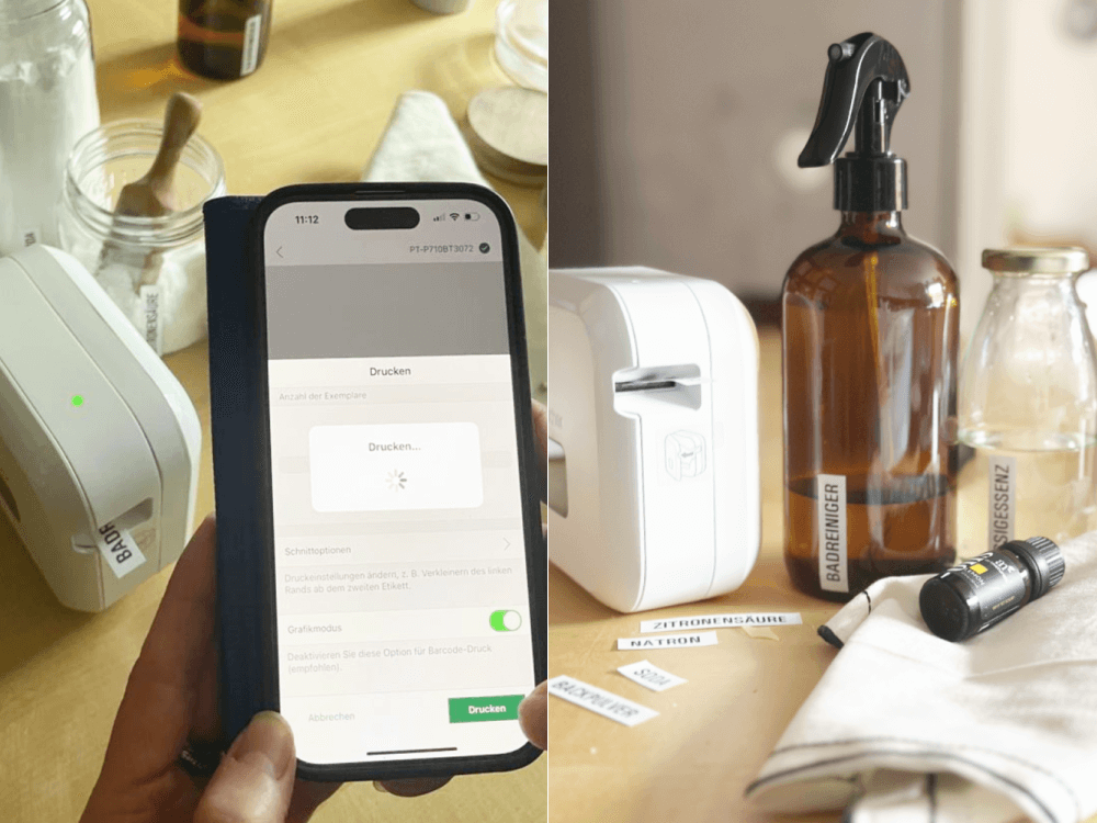 Ich drücke dieses Beschriftungsgerät allen Familienmitgliedern in die Hand, wenn sie schnell etwas beschriften müssen. Ich hatte es beispielsweise auch bei den Dreharbeiten zu „Wir räumen auf“ dabei, wenn ich ein bisschen Übersicht in eine Sortierung bringen wollte. Der Vorteil: Es ist unabhängig vom Strom und benötigt keine App.