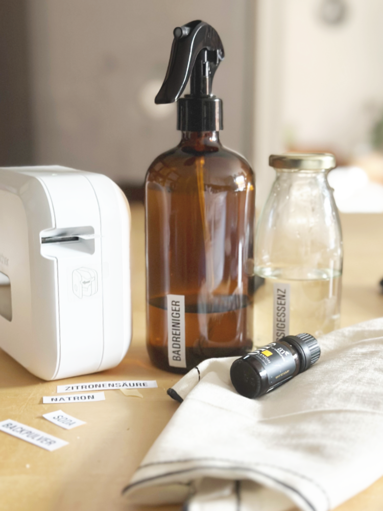 Ich kaufe schon lange bewusst ein, vermeide Plastik und unnötige Verpackungen, wo es nur geht, aber mein Putzschrank war das reinste Chemielabor. Es musste ein Plan her, um meine Reinigungsgewohnheiten zu ändern – um endlich auf eine natürliche und nachhaltigere Weise zu putzen. Und weil ich es immer gerne hübsch habe, fand ich die Idee von DIY mit schöner Verpackung super! Ich bin ja immer der Ansicht, dass Haushaltsdinge so schön wie möglich aussehen sollten, damit man sie gerne benutzt! Und die Beschriftung (mit dem Brother P-Touch Cube) muss natürlich auch on Point sein!