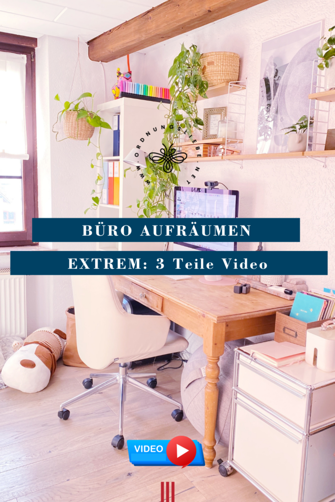 Also los gehts! Schau mir über die Schulter, wie ich mein Büro ausmiste und auf Vordermann bringe. Wenn du noch mehr Tipps brauchst, dann findest du sie in diesem Beitrag.