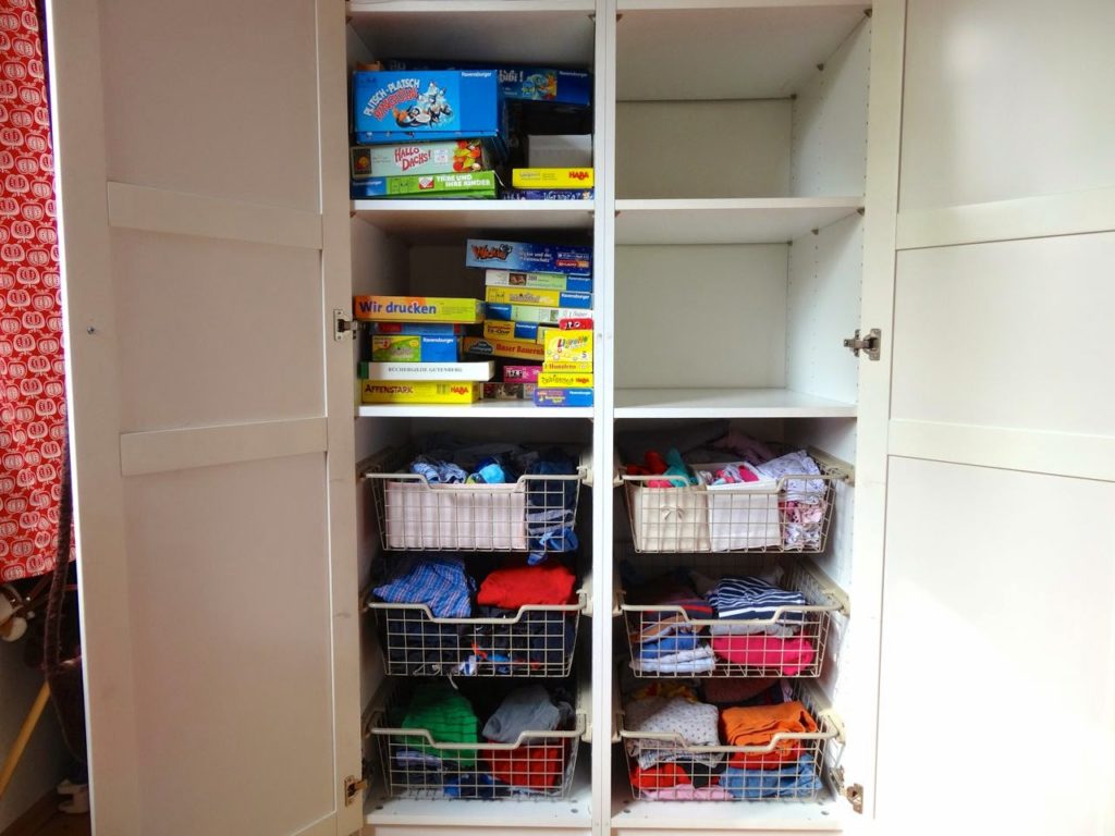 Ich finde sie besonders für Kinder ganz wunderbar praktisch! Mittlerweile gibt es diese Körbe auch in anderen Designs und sogar als klassische Schublade, die den gesamten Schrank noch aufgeräumter wirken lassen. Ich räume die Sachen ja auch gerne in kleinen Päckchen hochkant in die Körbe, so dass man einen besseren Überblick bekommt. Ich habe dazu mal ein Video gemacht, das ihr euch hier und bei YouTube anschauen könnt. Es gibt unendlich viele Möglichkeiten, mit Schubfächern den Kleiderschrank zu organisieren und langfristig in Ordnung zu halten!