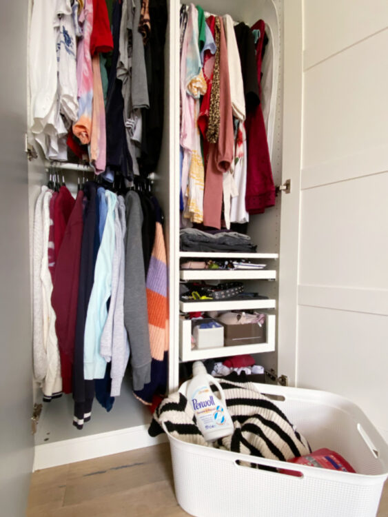 Apropos „pflegen“: Und zum Schluss – gepflegte und gewaschene Garderobe zieht man natürlich viel lieber an als Schmuddelsachen, die verfleckt sind. Gebt eurer Kleidung Liebe und vor allem Zuwendung in Form von passender Wäsche (Wollwaschmittel für die Pullis statt 08/15-Colour-Waschmittel, besondere Pflege für Schwarzes …). Zusätzlich solltet ihr beim Aufräumen des Schrankes Teile, die länger im Kleiderschrank lagen oder müffeln unbedingt auslüften und bei Flecken natürlich waschen.
