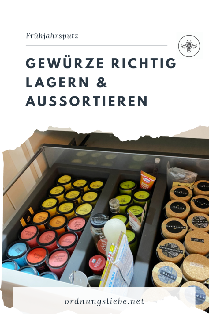 Oben seht ihr übrigens meine Gewürzschublade. Nicht gerade instagram-tauglich aber praktisch. Es gibt drei verschiedene Aufbewahrungsbehälter, die alle noch einmal (wenn sie das nicht schon hatten) eine Beschriftung von oben bekommen haben. So sehe ich ganz schnell, was ich wo finde. Liegen eure Gewürze oder stehen in einem Schrank, dann beschriftet ihr sie unbedingt von der Seite. Wenn ihr über ein Regal verfügt, ist vielleicht eine Drehvorrichtung sinnvoll oder eine abgestufte Aufbewahrung.