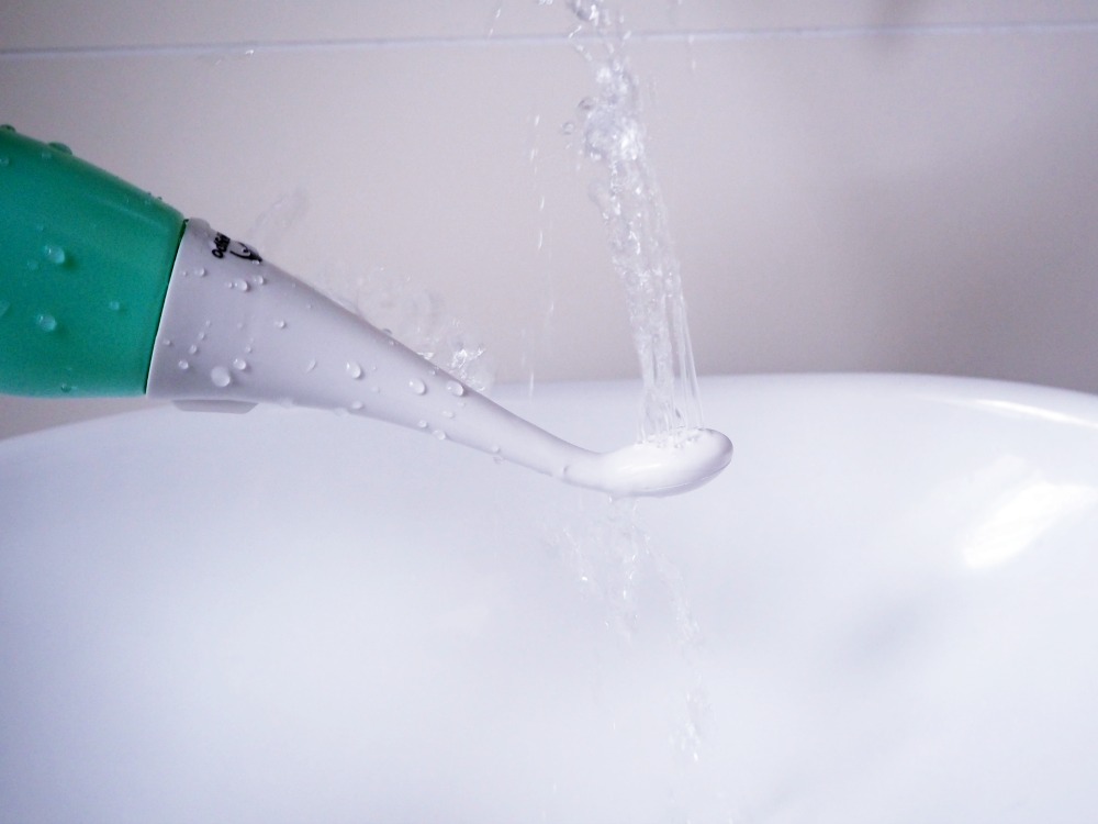 Wie es funktioniert? Aufschrauben, Wasser einfüllen, zuschrauben, an den Popo halten und drücken. Zack, sauber!