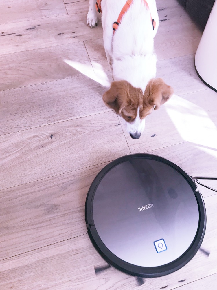 Yes, hier kommt jetzt Butter bei die Fische zum Thema Hundehaare entfernen. Jeden Tag einen Saugroboter durchlaufen lassen hilft. Aber die Erfahrung zeigt, dass er oft nicht gründlich genug ist. Gerade auf Teppichen haken sich Katzen- oder Hundehaare besonders gerne fest. Da muss man dann schon 4 oder 5 Mal über die selbe Stelle saugen. Das ist in einem Saugroboterprogramm nicht wirklich festgeschrieben. Unser 08/15 Staubsauger schafft das – aber er ist halt einfach ein großes Saugmonster, das ich nicht gerne aus dem Schrank wuchte und Frieda hasst ihn auch richtig.