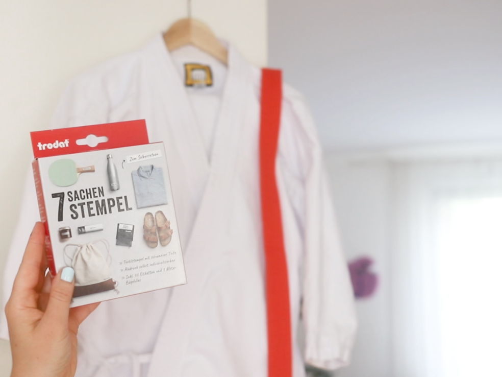 Ja, und was bei den Kindern funktioniert, ist für Erwachsene auch super. Golfbälle können von nun an markiert, der Judoanzug beschriftet und die Tortentransportbox, die Grillzange kann zukünftig auch direkt zugeordnet werden. Und falls du in einem Beruf arbeitest, in dem du Arbeitskleidung trägst: Dann ist der Stempel auch hier richtig super!