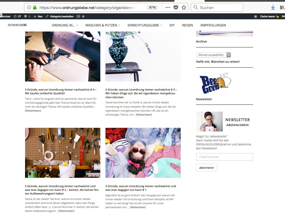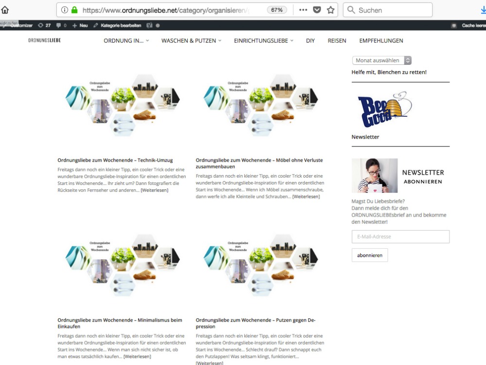 Meine Reihe „Ordnungsliebe zum Wochenende“, die immer Freitagmittag erschienen ist.