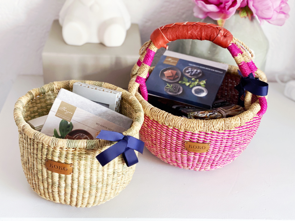 Ich habe mich dieses Jahr für Körbchen von Kokobasket (selbstgekauft) und finde sie unglaublich schön! Dadurch sind sie nicht nur für das Osterfest optimal, sondern auch rund ums Jahr. Ich nutze die ohne Henkel zum Beispiel gerne als Blumenübertopf. Und für die anderen Varianten fallen mir auch noch tausend Ideen ein. Die ganz großen Varianten nutzen wir beispielsweise als Zeitschriftenaufbewahrung, in die kleineren Körbchen füllen wir im Bad Kosmetika. Was die Osterkörbchen noch nachhaltiger macht, ist ihre wirklich tolle Qualität. Da fransen keine Halme aus oder stehen über, sondern alles ist schön gleichmässig und stabil.