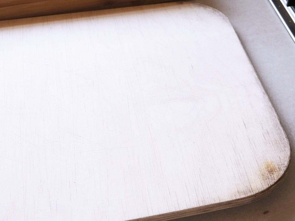 Sollte das Brettchen mal besonders verfärbt sein – beispielsweise durch Rote Bete oder Rotkohl, dann hilft folgender Trick: Zitronensaft und Backpulver zu einem Brei mischen und auf der verfärbten Stelle verteilen. Gut einwirken lassen und mit warmem Wasser abspülen.