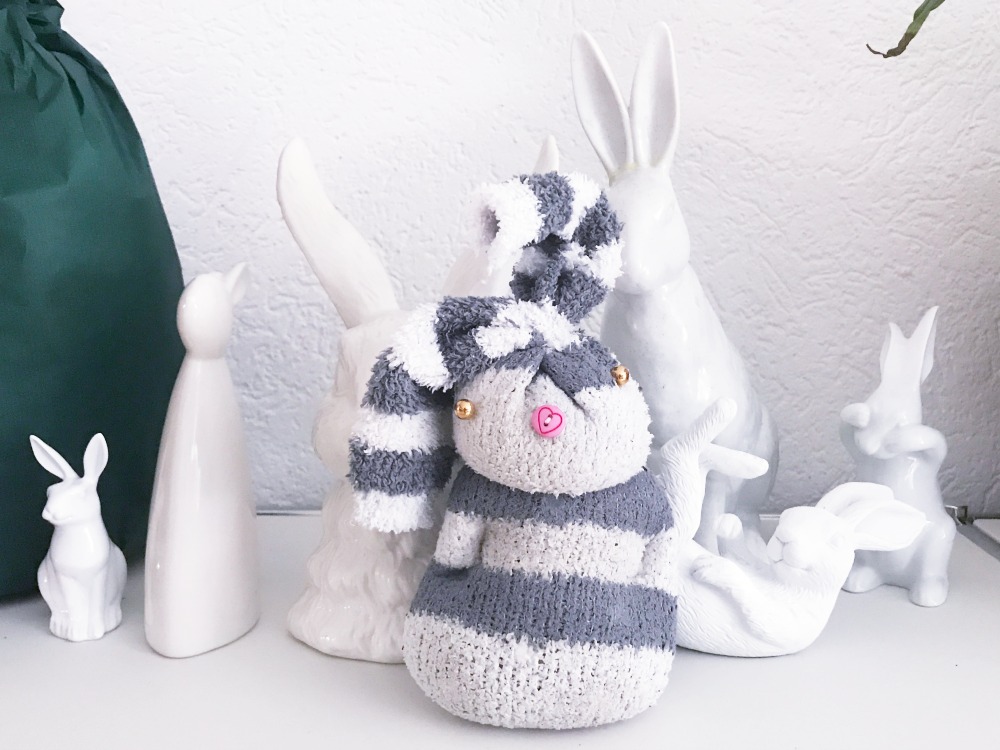 Wichtig: improvisiert einfach mit Dingen, die ihr sowieso zu Hause habt. Macht euch keinen Druck und freut euch, dass man auch mit ganz einfachen Dingen, Erfolge erzielen kann. Wer es etwas perfekter haben möchte, der kann die Ohren des kleinen Hasen es noch zusammen nähen und ihm einen hübschen Schal oder ein Tuch oder sogar ein Jäckchen verpassen. Der Fantasie sind da keine Grenzen gesetzt!
