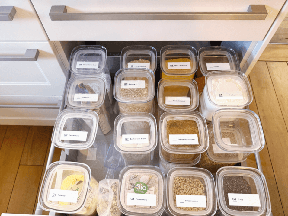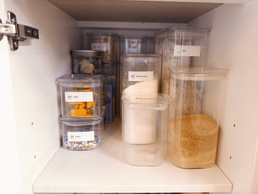 Als erstes schauen wir an, welche Vorräte du hast. Was ist da? Wo soll es hin? Was muss entsorgt werden? Welche Lebensmittel kaufst du immer nach? Diese Bestandsaufnahme ist der erste Schritt und auch der wichtigste. Denn nur so bekommst du einen realistischen Überblick. Was nutzen dir umgefüllte Haferflocken, die du sowieso nie verbrauchen wirst? Oder hübsch in Gläser verpackte Pinienkerne, die demnächst ablaufen?