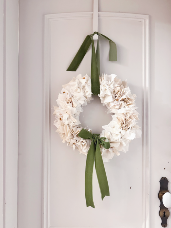 Die gängigste Methode sind Klebehaken, die jedoch nicht mit schweren Kränzen funktioniert und die auch Kleberückstände hinterlassen kann. Deswegen zeige ich euch nur die Methode mit dem Haken zum Überstülpen und den Trick mit einem Gegengewicht, das den Kranz hält. Beginnen wir damit: